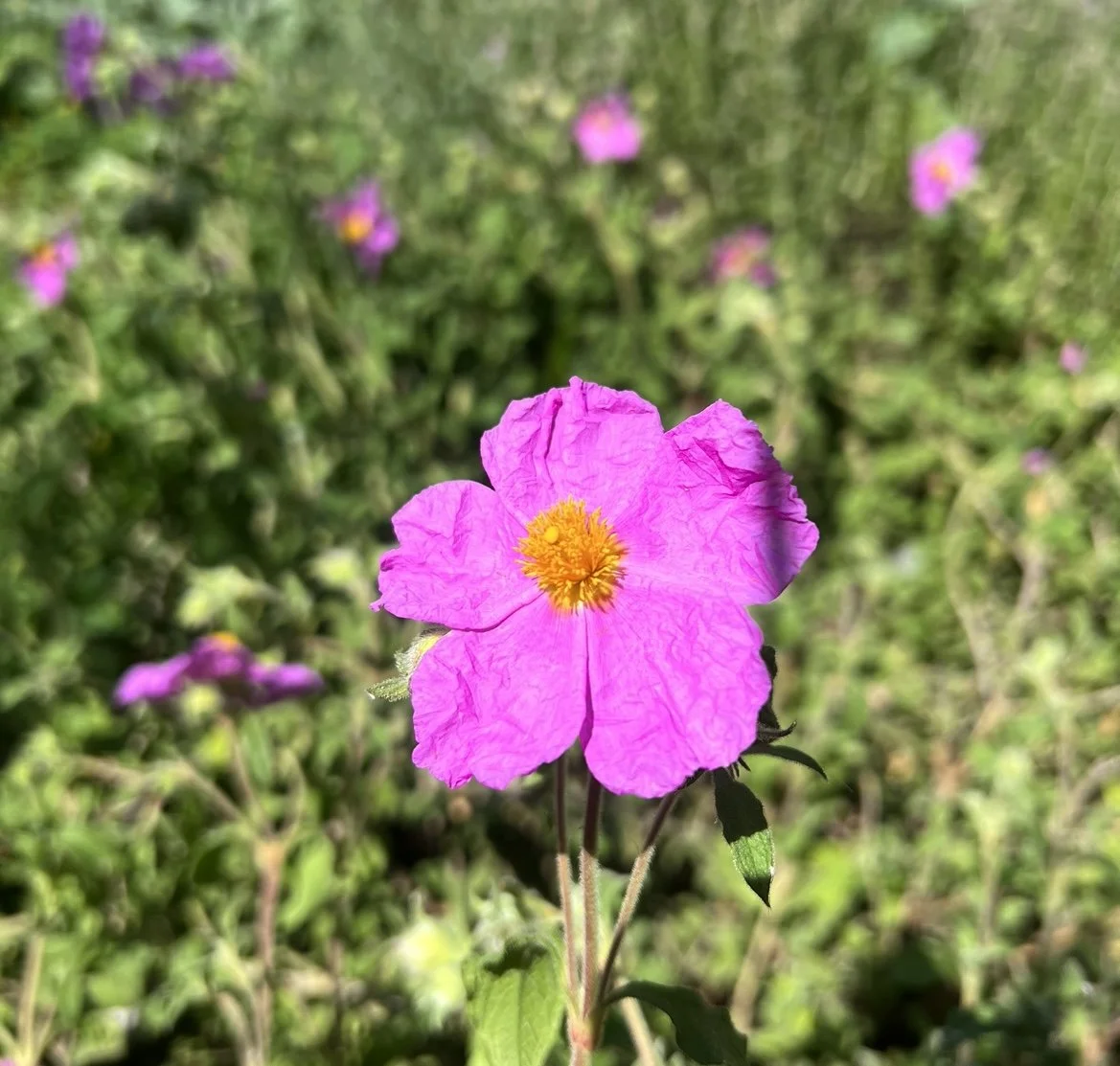 ‘Kistos’ is a special rock rose variety that is native to the Greek island of Crete. It is prized for producing a medicinal essential oil by the name of ‘Labdanum’ or ‘Lamdano’ in Greek. It grows as a hardy evergreen shrub, big, bushy and will be full of the most stunning and delicate pink flowers from early Spring to Summer. Grows well in hot dry conditions and needs very little maintenance once established.
